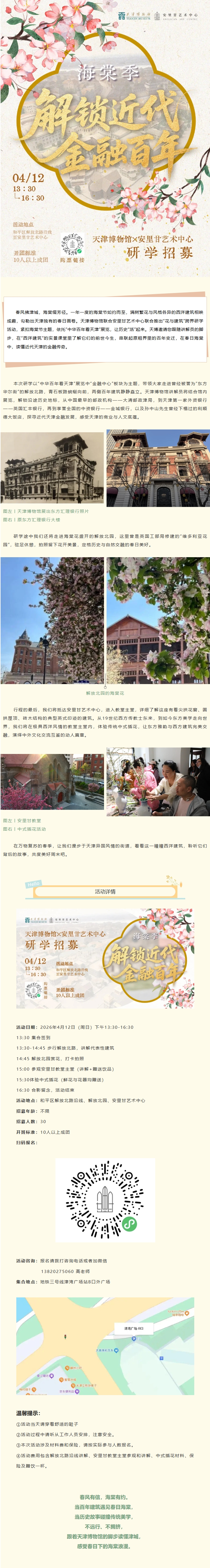 天博研学招募丨相约海棠季 解锁近代金融百年历史
