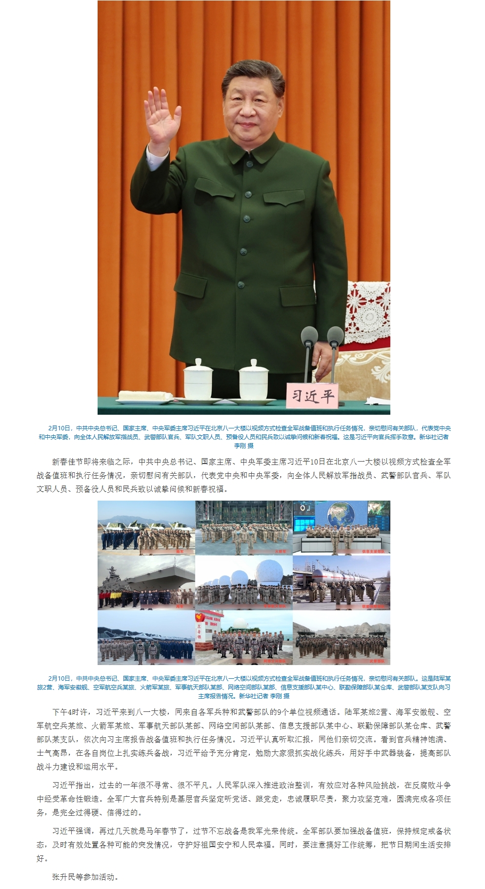 习近平春节前夕慰问部队 向全体人民解放军指战员武警部队官兵