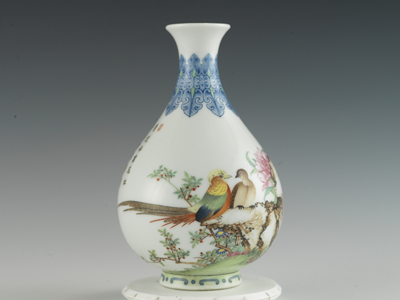 纵观天津博物馆的瓷器收藏,几乎就是在观看一部完整的中国瓷器发展史。从三国两晋时的青瓷到宋代的五大名窑瓷器,从元代景德镇的青花、青白瓷到明清制瓷业高峰时期的各类瓷器类别均有收藏,其中更不乏众多可称典范的代表性器物。这其中,清乾隆款珐琅彩芍药雉鸡图玉壶春...