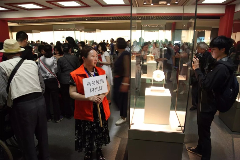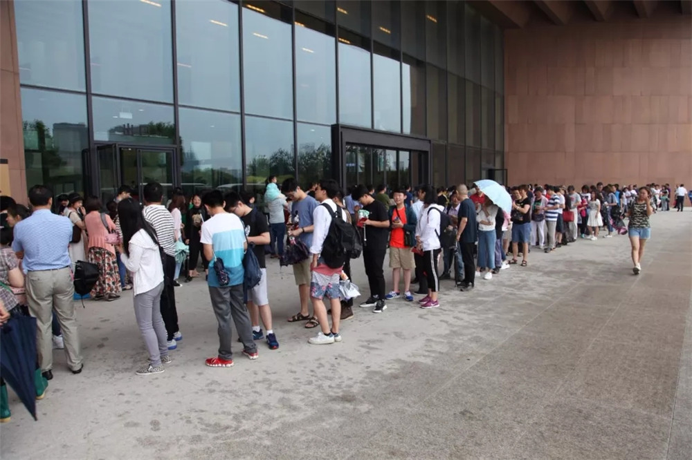 为保护展品及观众安全,维护正常参观秩序,天津博物馆不仅启动了《观众参观高峰应急预案》,同时还通过微信、微博等新媒体渠道多次及时发布观众参观情况,建议市民尽量错峰参观。此外,天博还开通了网络预约取票窗口,凡通过天津博物馆官网进行网络预约的观众以及70岁以上的老人,均可从该预约取票窗口取票。此举可减少观众排队等候时间,为参观增添便利。为了让观众更好地了解展品和参观展览,天津博物馆志愿者和讲解员还提供免费讲解近百场,为观众解读文物背后的精彩故事。