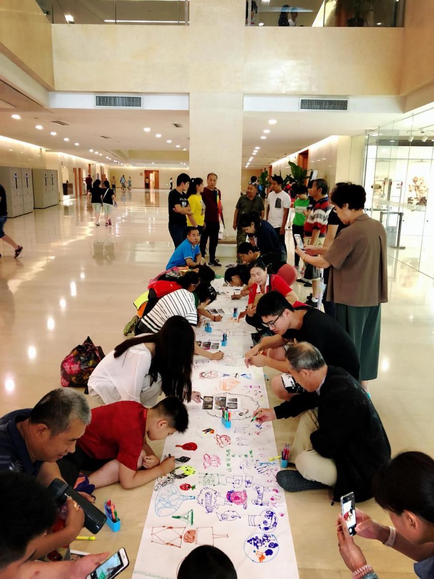 在制作香囊的活动中,因步骤复杂,大家非常仔细,认真完成每一个环节,一件件出色的作品充分的展现了孩子们的动手能力。包粽子活动勾起了大家的兴趣,每个孩子都积极的参与进来,体验劳作的快乐。画龙舟活动环节可是孩子们自由发挥的欢乐时刻。每个孩子都选择了一件自己最喜爱的天津博物馆藏品画在画卷上,玉壶春瓶、太保鼎、荷花纹盘、匏制葫芦瓶在他们的画笔下惟妙惟肖,在他们的带动下,现场观众也都纷纷参与其中。