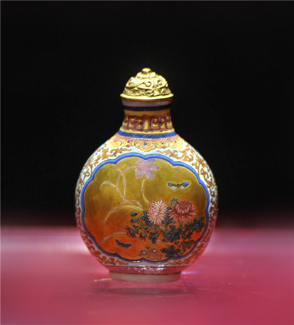 清 乾隆款珐琅彩花蝶纹料胎鼻烟壶