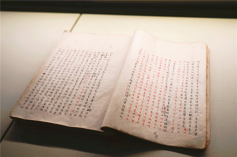确实,展品选取20世纪20年代到60年代共40年间傅抱石创作的绘画作品,从目前可见的傅抱石最早的绘画作品——创作于1925年的《策杖携琴图》《竹下骑驴图》《秋林水阁图》《松崖对饮图》四条屏,到1965年他去世前创作的《长征第一山图》《无限风光在险峰》《毛泽东<浪淘沙·北戴河>词意图》等,涵盖傅抱石青年、中年、晚年各个时期的作品,横跨他的整个艺术人生,怎么安排展览结构,确实很考验我们的策展能力。因此,根据傅抱石作品的时代背景和艺术特色,将展览分为“往往醉后”、“上古衣冠”、“异域旅行”、“山河新貌”、“激情图解”、“遣兴自娱”六个单元,不仅展出了傅抱石绘画作品,还有他创作的大量写生画稿、篆刻、著作手稿来充实展览,展现傅抱石绘画艺术形成、发展、成熟的轨迹,让观众得以全面的了解傅抱石的艺术成就。