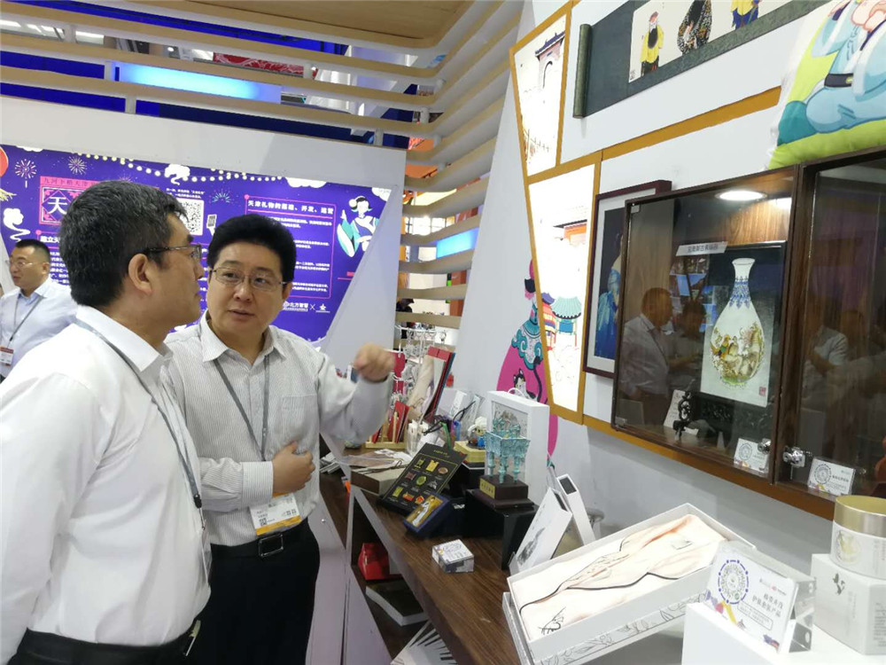 5月18日,天津市委常委、宣传部部长陈浙闽,天津市文化和旅游局党委书记、局长姚建军,天津北方文化产业投资集团董事长王克等一行到第15届中国(深圳)国际文化产业博览交易会(以下简称“文博会”)的1号展馆文化产业综合馆天津馆视察工作,对天津博物馆文创工作表示肯定并对未来工作提出新的期许。