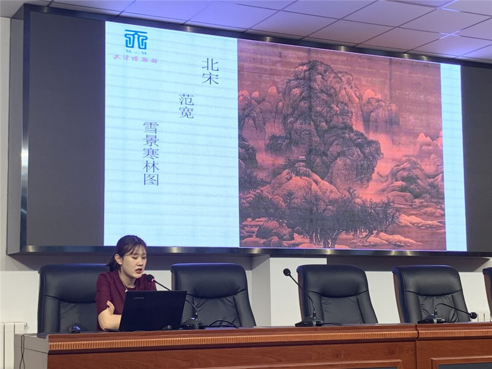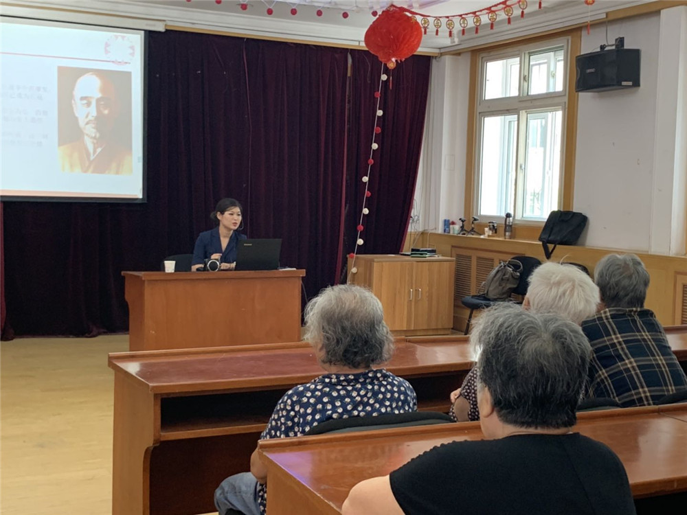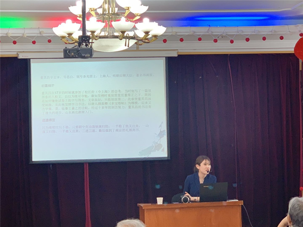 6月21日下午,天博的三位优秀讲解员走进天津市第三养老院,为这里的老人们带去三场天博精品讲解内容。讲解员张舒怡为老人们带去以“津品典藏——雪景寒林图”为题的讲座,从范宽的生平到其绘画风格特色等方面讲述了这件藏品的珍贵。接着,田欣讲解员为爷爷奶奶们带去题为“弘一大师有关抗战誓言的信札”的讲解,讲述了李叔同先生在作为弘一大师期间的书法造诣和爱国情操。最后,天博的优秀讲解员张凌菲为在场的老人们带去“明董其昌疏林远岫图轴”的赏析,带领大家了解了董其昌和袁可立感人至深的友谊故事。