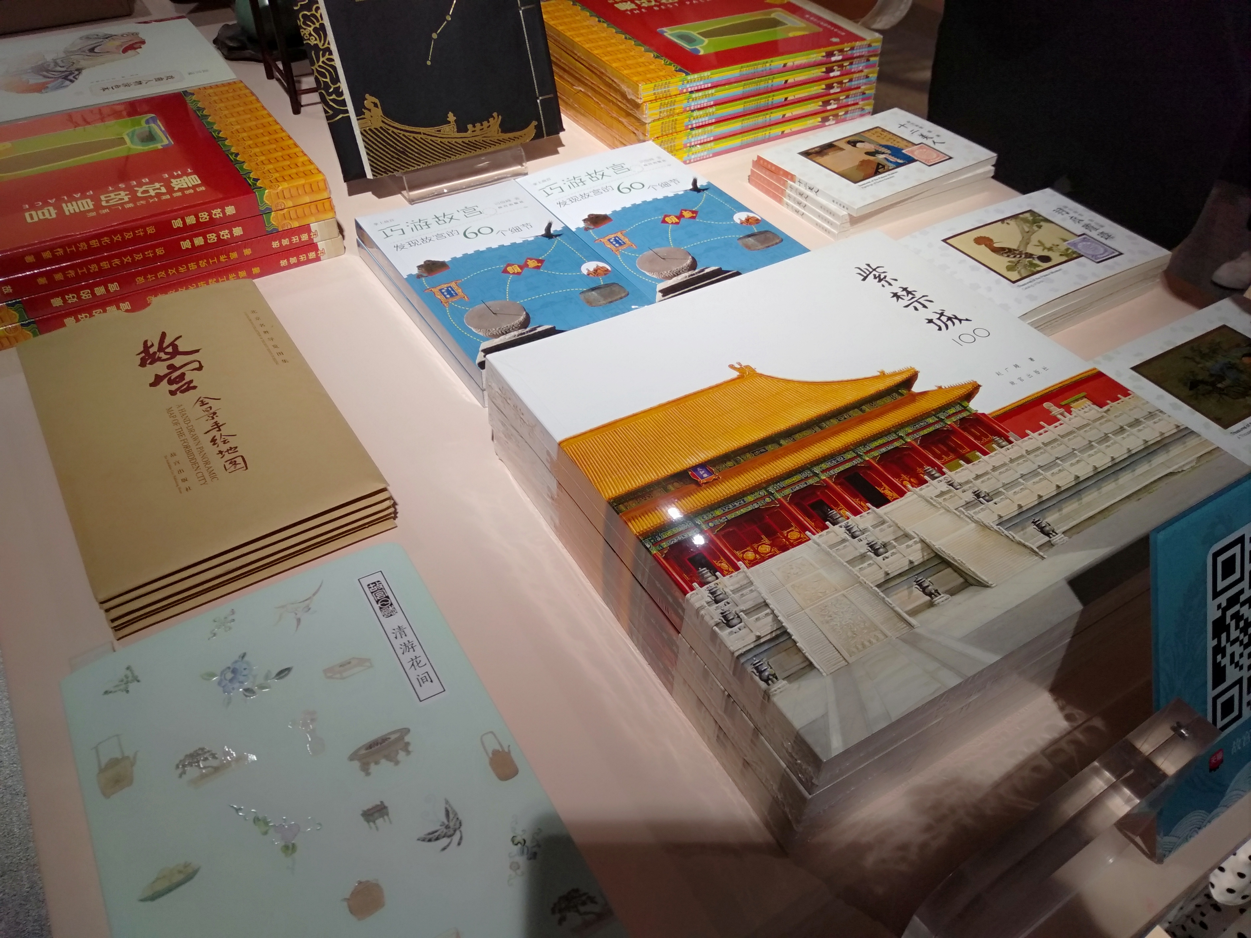 此次展览中,既有故宫出版社近年来出版的诸多精品图书,如《故宫经典》系列、《故宫博物院藏品大系》、《故宫画谱》、《宫里过节》系列等,也有故宫博物院精品文创产品,如“千里江山图”、“清明上河图”、“海错图”等系列文创以及刚刚推出的“悦目”化妆镜系列。