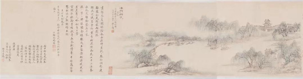 清 陈靖等三人 设色水西庄图卷 天津博物馆藏