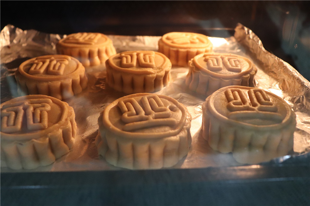 分发面团、揉面、包馅、塑形、 烘焙、装盒,每个步骤大家都做的一丝不苟。一个个印有天津博物馆LOGO的月饼散发着浓浓的中秋香味,为节日带来异样的温暖。