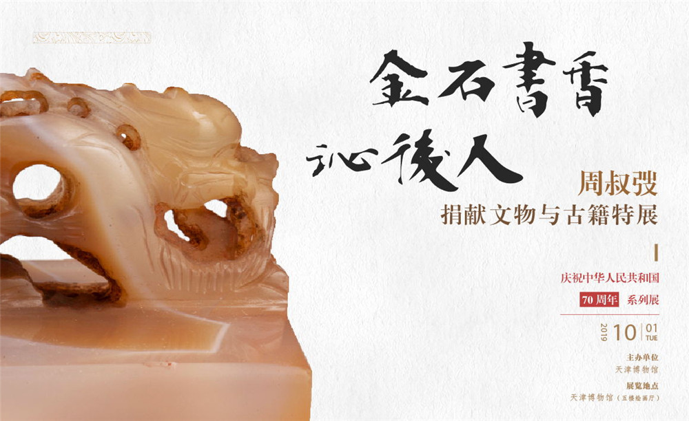 “金石书香沁后人——周叔弢捐献文物与古籍特展”由天津博物馆主办,国家图书馆协办,共展出周叔弢先生捐献给国家的古籍善本与各类文物280余件。其中一级文物27件/套。国家图书馆藏珍贵宋、元、明本古籍善本,如明内府抄本《永乐大典》;天津博物馆藏春秋“壬戎兵器”铜玺,隋大业四年(608)大般涅槃经卷,宋盥手观花图册,明宋克章草书急就章卷等珍贵古籍、文物都将在展览中展出。该展览2019年10月1日正式开展,预计展出至2020年2月9日。