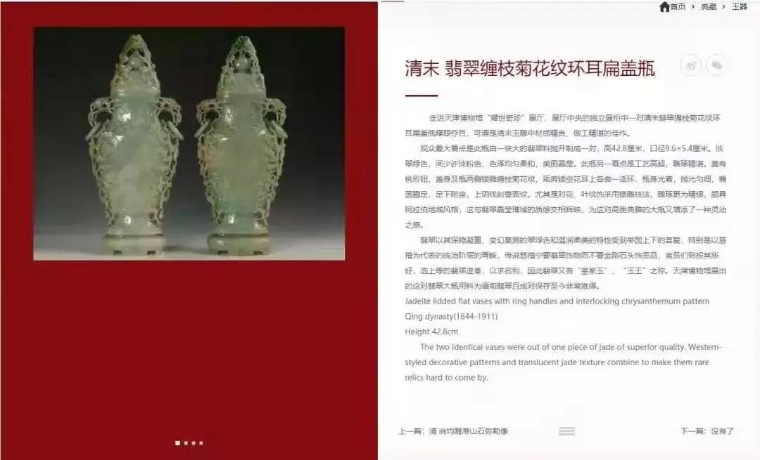 虽然闭馆,但天津博物馆依旧通过官网、微博、微信等多种途径推广数字化在线展示,确保疫情防控期间文化服务不断档。天津博物馆官网与天津博物馆官方微信公众号“天博播报”中计划推出以往举办的17个重要展览,现已上线10个,剩下的7个天津博物馆的工作人员正在快马加鞭的准备之中。温故而知新,让广大文博爱好者能够足不出户,在线“云观展”。