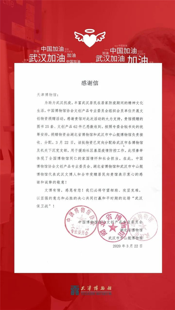 天津博物馆收到一封来自武汉的感谢信
