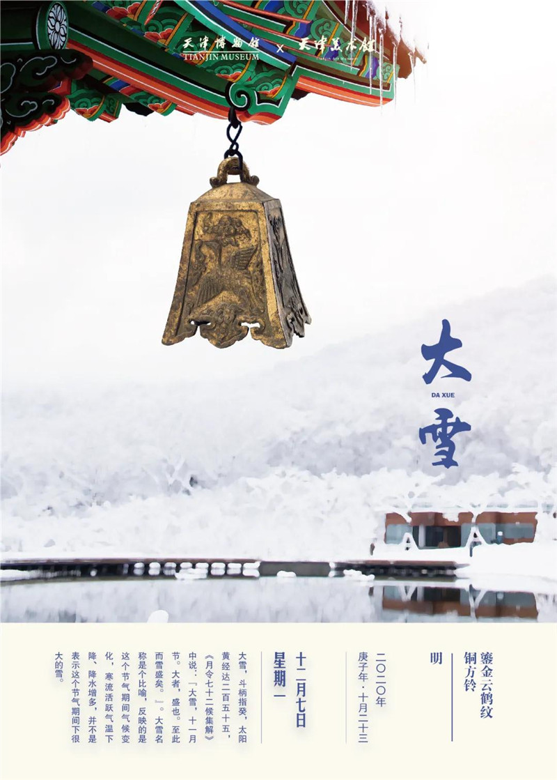 “大雪”是农历二十四节气中的第21个节气,更是冬季的第三个节气,标志着仲冬时节的正式开始;《月令七十二候集解》说:“大雪,十一月节,至此而雪盛也。”古人之所以将这个节气命名为“大雪”,是因为“雪”是水汽遇冷的产物,代表寒冷与降水。这节气的特点是气温显著下降、下雨或下雪。