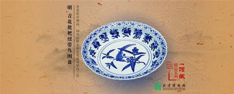 明 青花枇杷绶带鸟图盘 天津博物馆藏