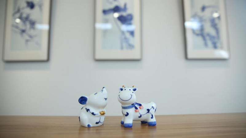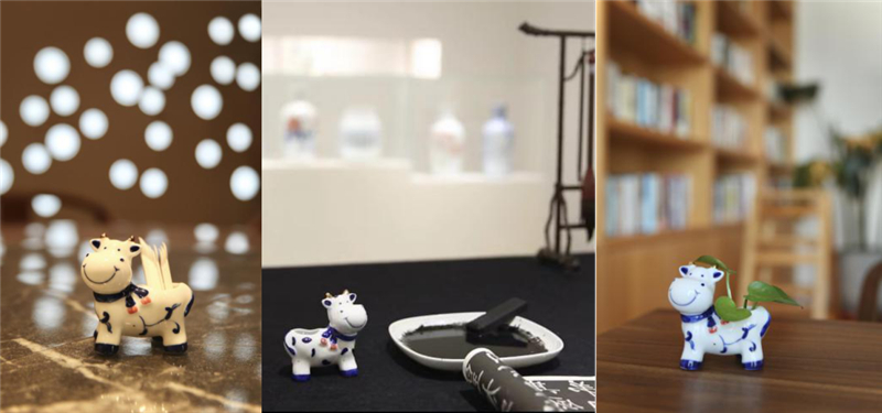 此外,天津博物馆与观照轩共同推出生肖瓷系列——“牛”转乾坤瓷牛,祈福辛丑年新气象。 这款瓷牛牛顶金角,昂首挺胸,圆润脸颊卡通俏皮,嘴角勾勒上扬,青花红边围脖儿为寒冬增添一股暖意;“身穿”天津博物馆馆藏经典缠枝青花纹饰,盼辛丑“牛安花明”;零星金水点缀,寄予来年牛运亨通。