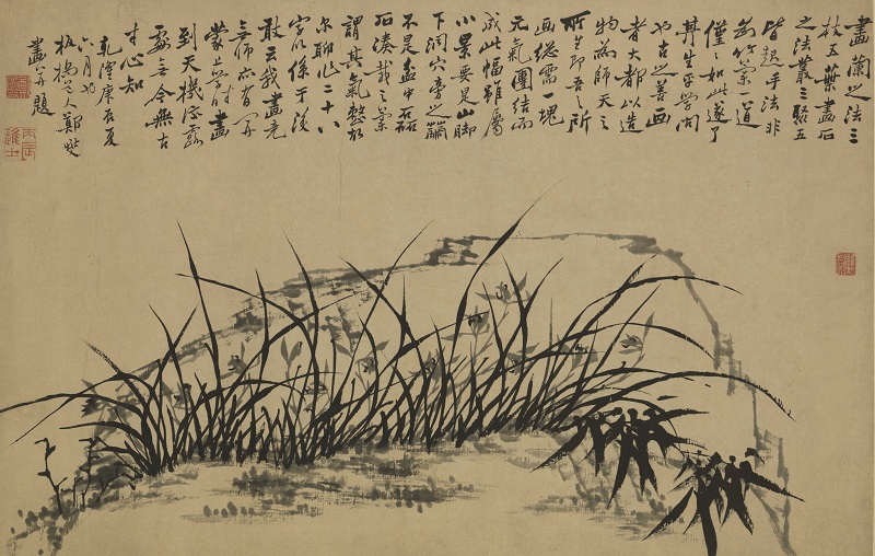 4. 四僧:八大山人、石涛、髡残和弘仁四位出家为僧的画家。他们都是由明入清的遗民画家,带有较强反清意识。他们重视感受生活,观察自然和独抒性灵,不以再现前人意境情调上的成就为满足,分别以激情洋溢和个性鲜明的艺术特色突破了“四王”所表现的情感内容,与当时占据主流地位的正统派画风大异其趣。