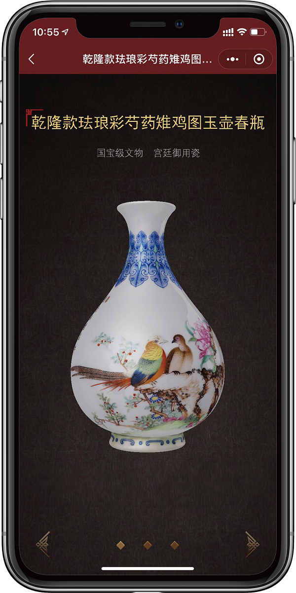 七、3D文物:该功能包含文物名称、文物断代、尺寸以及文物的三维模型,观众可进行缩放和拖动等手势操作。