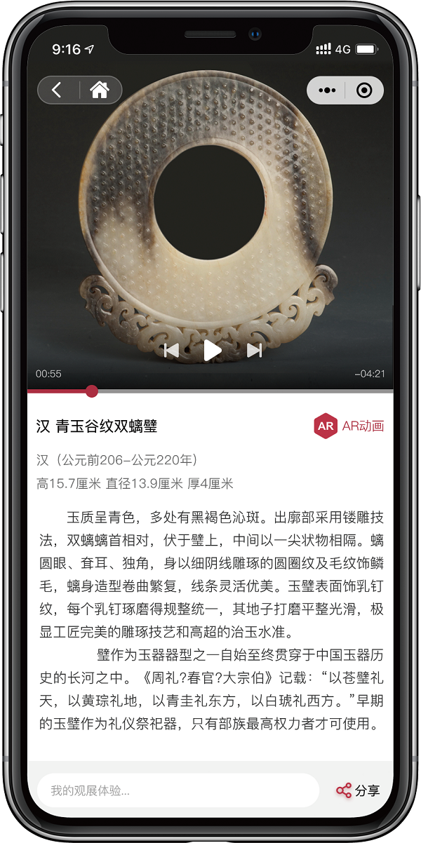 二、扫码讲解:扫描展柜上的展品二维码,可直接进入展品详情,查看文字介绍和语音讲解词。