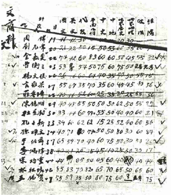 南开大学入学成绩单,显示于方舟化名为“于绍舜”