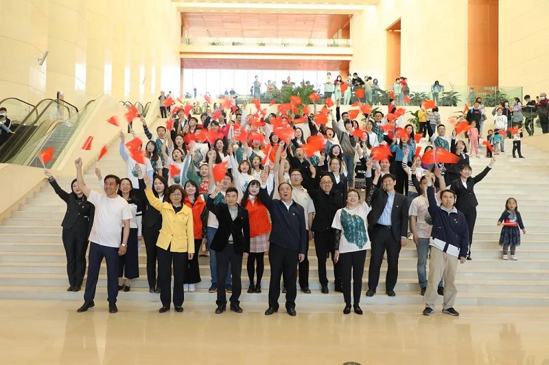 上午十时许,参加天津博物馆五四系列活动的员工统一在博物馆前厅集合,共同参加“我和2035有个约——天津博物馆五四主题快闪活动”。博物馆员工们以青春之名、赞青春之歌,唱出了对祖国美好未来的信心与期盼,唱出了“创领两个一百年”的青春豪情。活动场面热烈,引起不少观众驻足、围观、拍照、称赞。