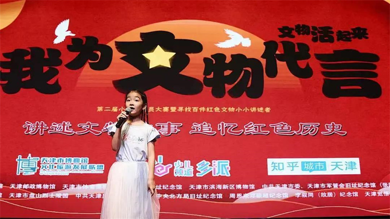 在党史学习教育动员大会上,习近平总书记指出:“要抓好青少年学习教育,着力讲好党的故事、革命的故事、英雄的故事,厚植爱党、爱国、爱社会主义的情感,让红色基因、革命薪火代代传承。”为了更好地发挥红色展览在青少年中的教育意义,天津博物馆联合媒体共同打造了“讲述文物故事 追忆红色历史”活动。100名小小讲解员通过大赛成为“寻找百件红色文物小小讲述人”。百位小选手的讲解视频已于近期在天津博物馆微信公众号中分期进行展播,这种全新的方式不仅回顾了中国共产党的光辉历史,庆祝建党百年。更加可贵的是,通过革命文物的讲解,革命薪火已经在百位讲解员幼小的心灵中点燃,“新中国来之不易”,我们要用实际行动赓续红色血脉,使革命薪火代代相传,让红色江山永不变色。而通过这100个家庭传播出的红色记忆影响更为广泛。