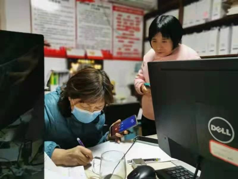 器物部黄娟在社区帮助统计居民信息
