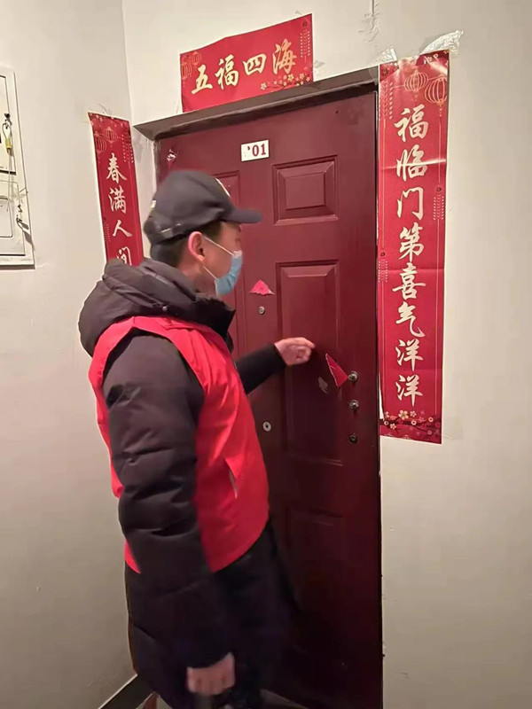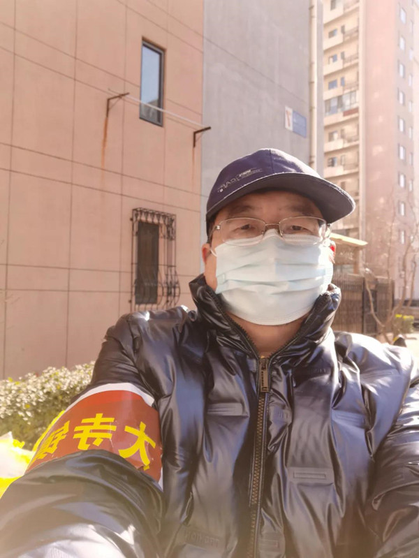 党办人事部张贺在社区执勤,帮助维持秩序