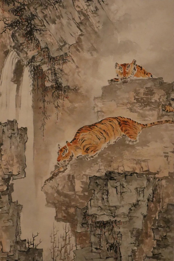 此图绘虎,不求工致,用笔松动洒脱,形态虽只可观大略,但所表现出的两虎的怡然神态,仍给人栩栩如生之感。