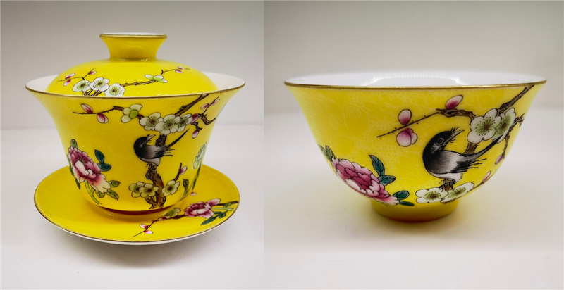 这套茶具手工绘制纹饰,采用高温烧制而成,质地坚密,造型饱满,线条流畅,手握舒适不烫手,整套茶具所采用的手工描金工艺更显尊贵典雅。