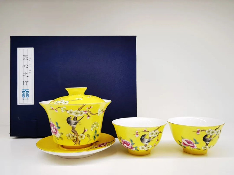 中国是茶的故乡,中国人爱好喝茶。这套文创产品提取馆藏文物中的“喜鹊”“梅花”等元素,造型精巧、寓意美好。