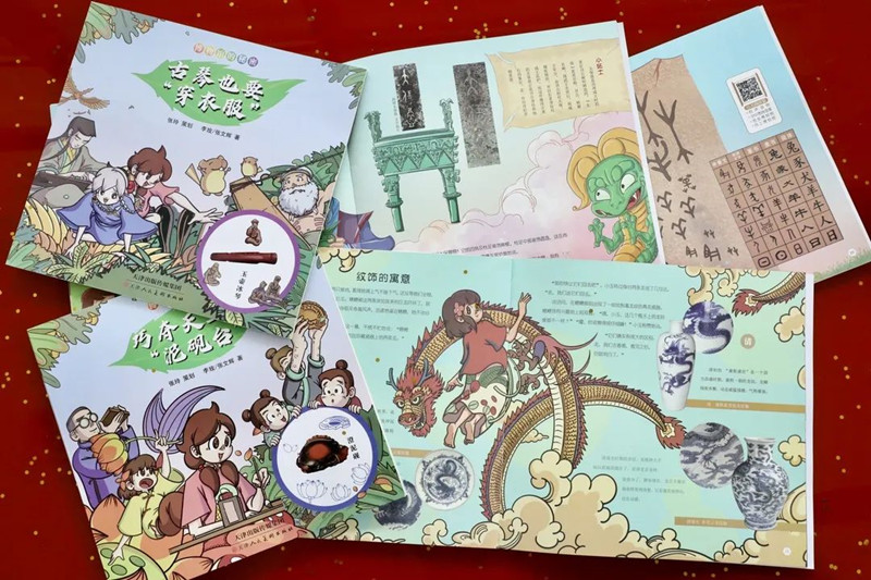 以馆藏文物为依托,天津博物馆与天津人民美术出版社合作出版《博物馆的秘密》系列儿童绘本丛书。此套儿童绘本选取天津博物馆10件不同时期各种类别的精品文物,多维度探寻文物本体,讲述文物背后的故事,推动儿童从认知到认同再到归属感和自豪感的文化价值观,让历史说话,让文物说话。传承祖先的成就和光荣、增强民族自尊和自信。