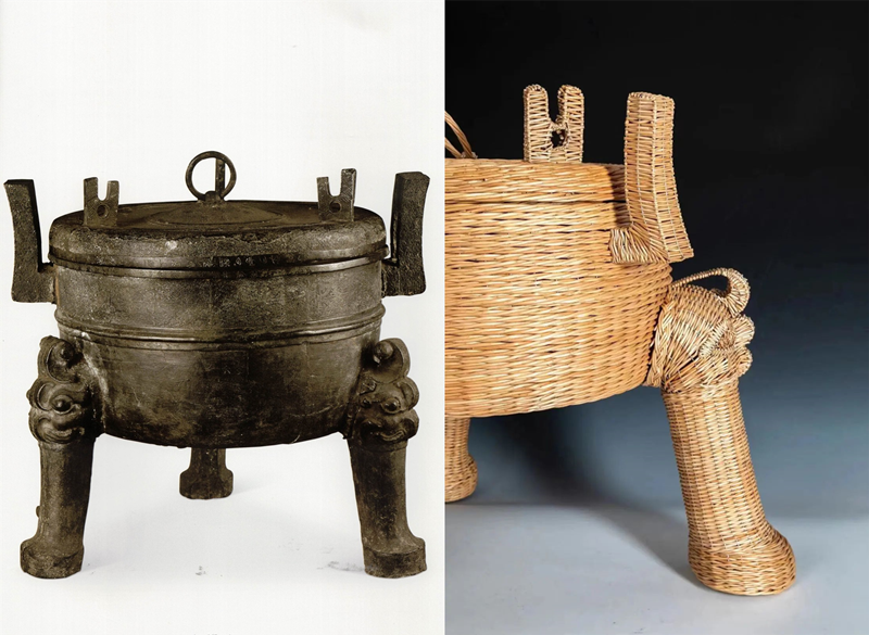因此,柳编这一传统工艺总是让人倍感亲切。而当柳编遇上文物,记忆的维度再度被拉远,那些铜鼎瓷瓶曾经伴随着我们的先人走过漫长岁月,如今将换一种形式走进现代人的日常生活,继续给人带来生活的便利、审美的享受以及心灵的慰藉。