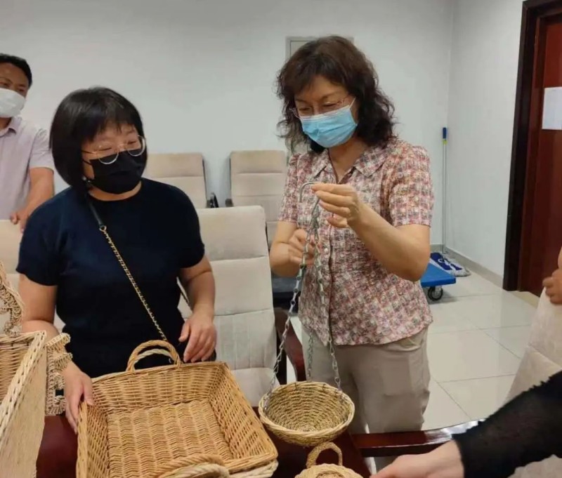 驻村工作队带着柳编文创包包和天津万象城交流合作事宜