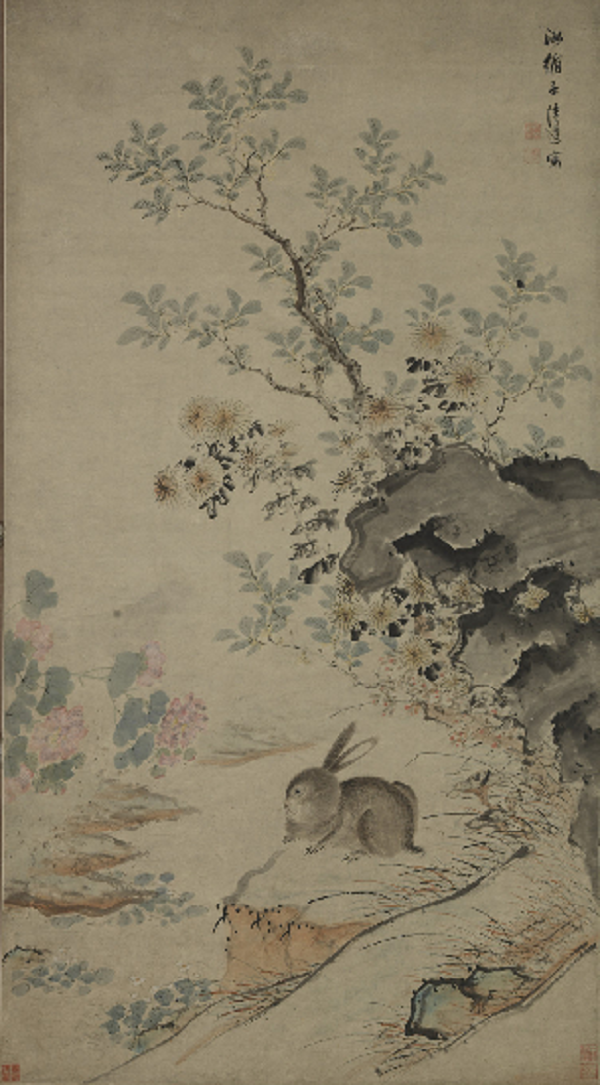 明 陈遵桂中玉兔图轴