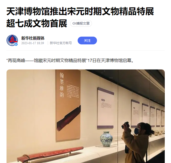 新华社 | 1月18日,新华社客户端刊发《天津博物馆推出宋元时期文物精品特展 超七成文物首展》。