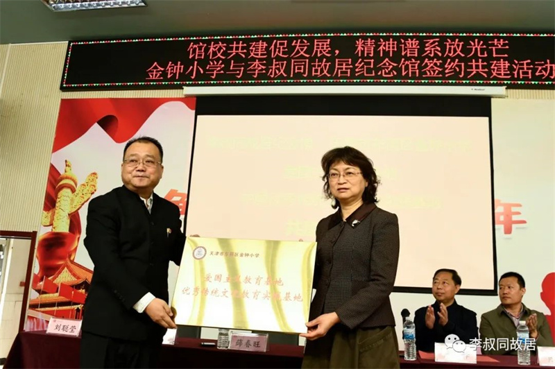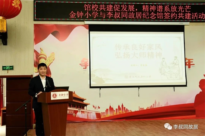 为深入贯彻落实党的二十大精神,加强博物馆教育与学校教育相融合,丰富学生们的校园文化生活,营造良好教育氛围,2023年4月14日,李叔同故居纪念馆与东丽区金钟小学签约共建,并通过形式多样、有声有色的展览宣传、专题讲座,满足同学们对中华优秀传统文化的需求。