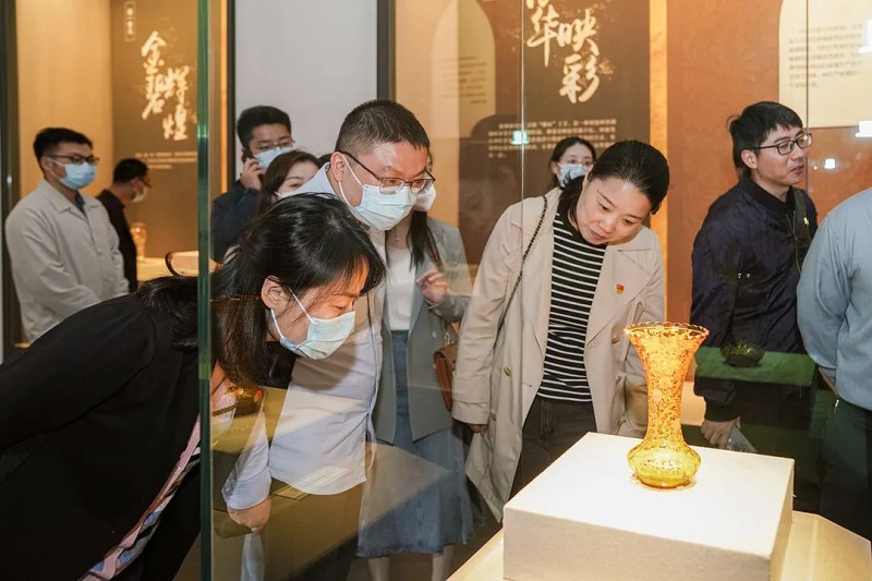 在盐城市博物馆开展的“琉光溢彩——西洋玻璃器展”展出34组60件 (套)天津博物馆馆藏西洋玻璃器,展现近现代欧美及西亚玻璃珐琅器的工艺特点及水平,以玻璃特有的、梦幻的工艺语汇和奇异情调,为观众送上一股赏心悦目的视觉新风。