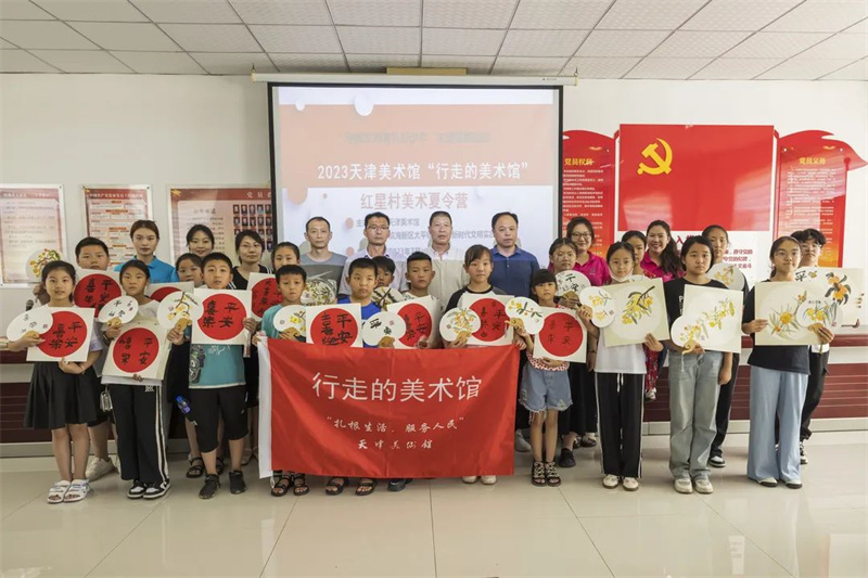 为深入贯彻落实习近平新时代中国特色社会主义思想和党的二十大精神,深入开展学习贯彻习近平新时代中国特色社会主义思想主题教育,推动“争做文明有礼天津人”主题活动在青少年中走深走实,助力红星村乡村振兴,天津美术馆联合太平镇红星村新时代文明实践站开展2023天津美术馆“行走的美术馆”夏令营活动,走进天博帮扶示范村——滨海新区太平镇红星村。