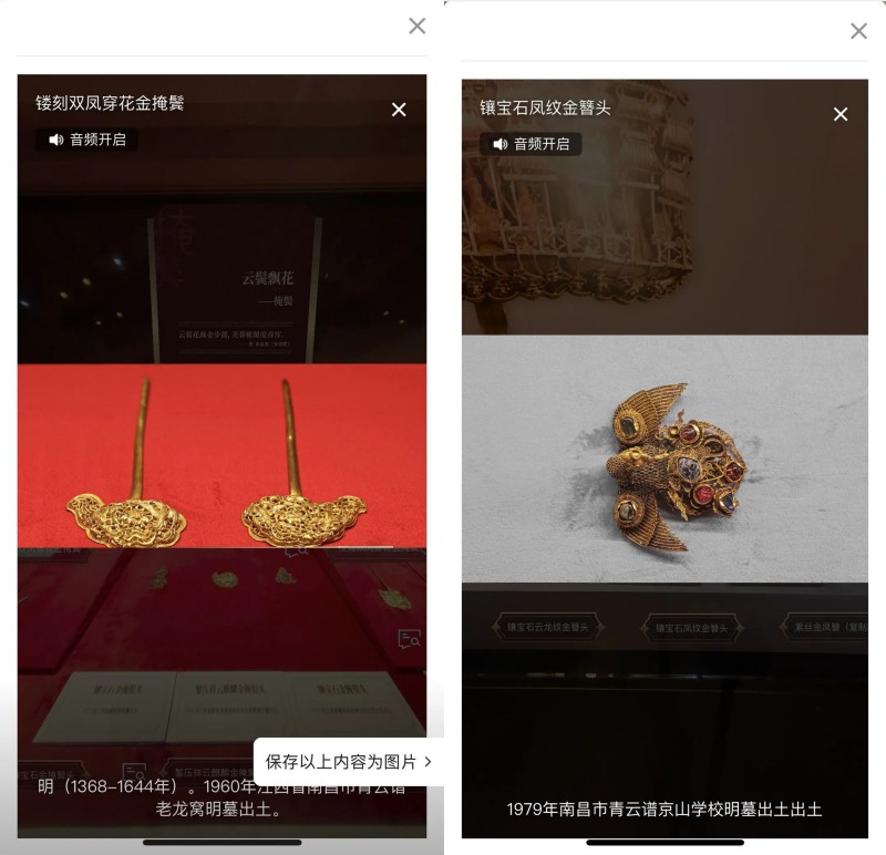 听音视频讲解,看文博挖掘背后的故事,“把玩”文物,全方位观察文物细节,观众浏览体验更丰富,进一步感受中华文化魅力。