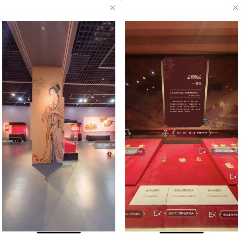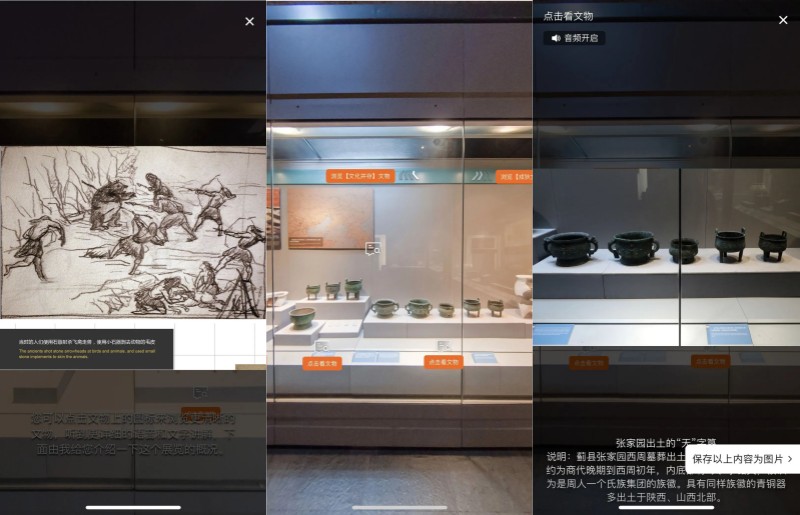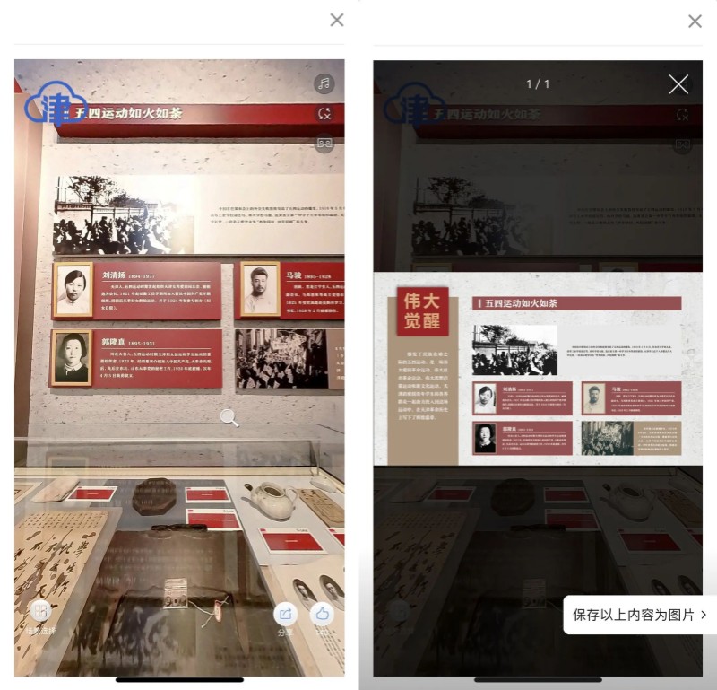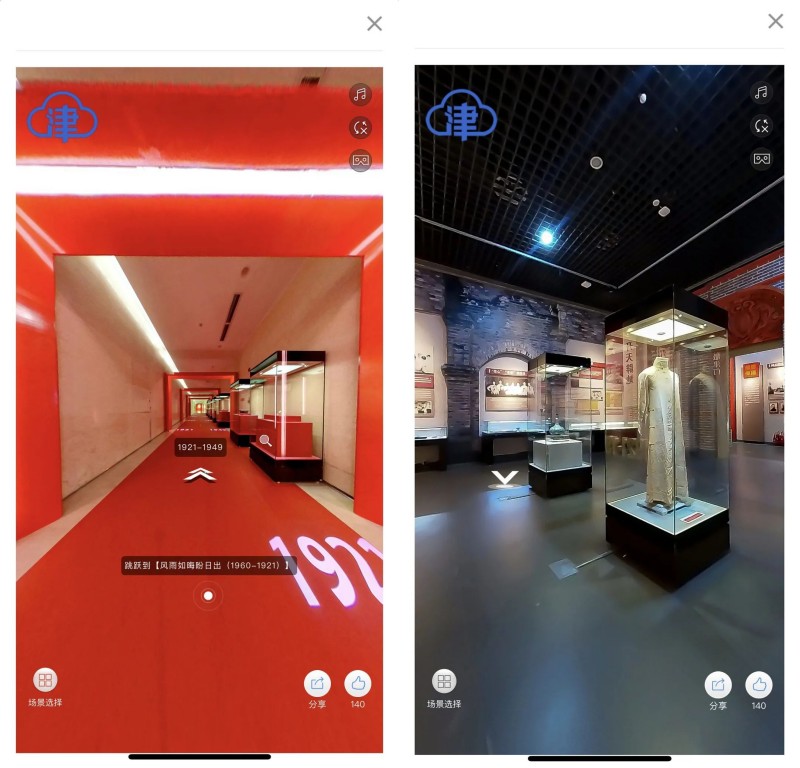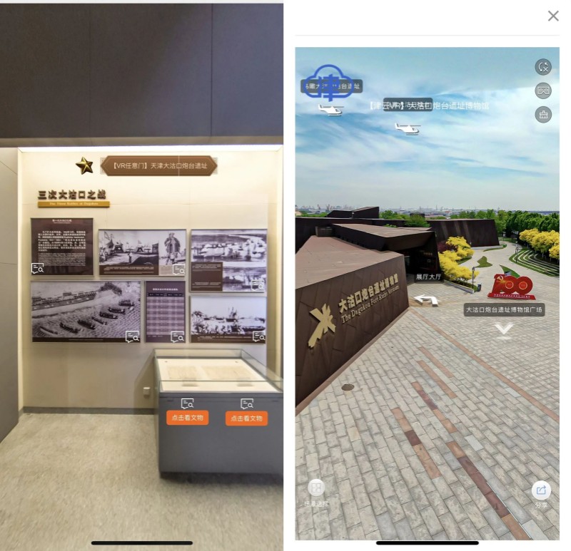 基本陈列“天津人文的由来”所有陈列品一览无余,且不仅限于文字和音视频,【考古幕后】板块将文物发掘的过程嵌入其中,满足观众的好奇心和求知欲。而在基本陈列“中华百年看天津”展馆中,除了文物展品的数字化,还延伸嵌入了同场景VR链接,真正实现“此地”和“他方“的时空穿梭,更真实地还原历史现场。