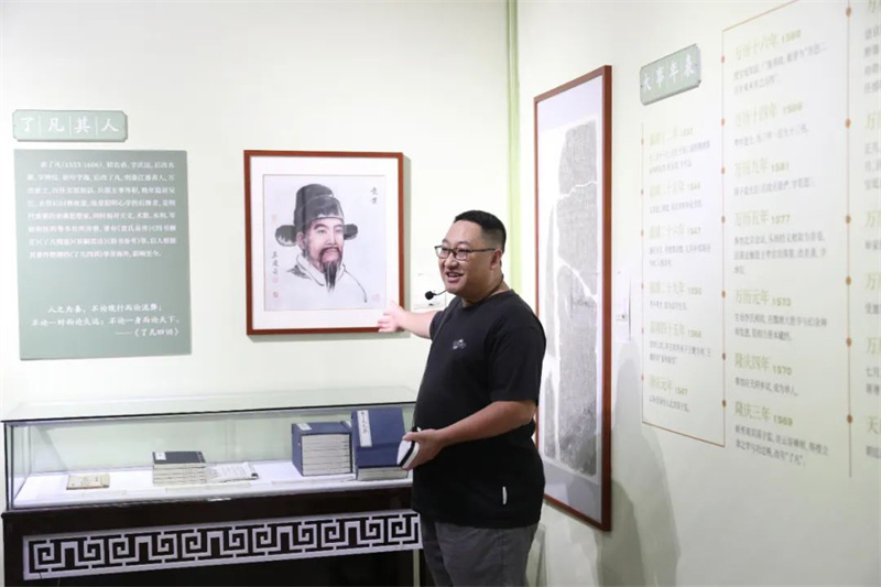 浙江省嘉兴市嘉善县文化和广电旅游体育局党委书记、局长郭宇涛介绍展览基本情况。他说:嘉善与宝坻因了凡结缘,因善文化血脉相连。活动为两地共同深入挖掘袁了凡文化内涵,拓展弘扬袁了凡文化渠道,培养研究传播袁了凡文化人才打下扎实的基础,从而更好地让了凡善学思想走进千家万户,让善行遍天下。