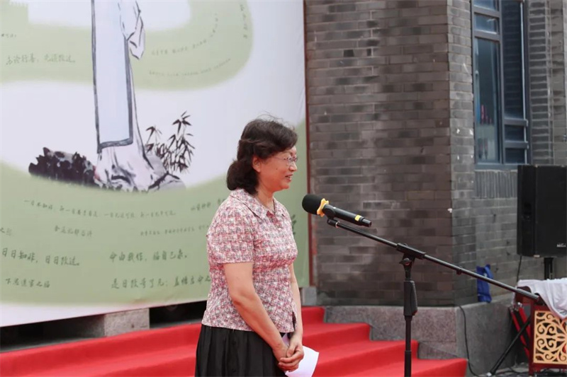 宝坻区区委常委、区委宣传部部长贾雪娜讲话并宣布“善行天下——袁了凡”(宝坻站)开幕。