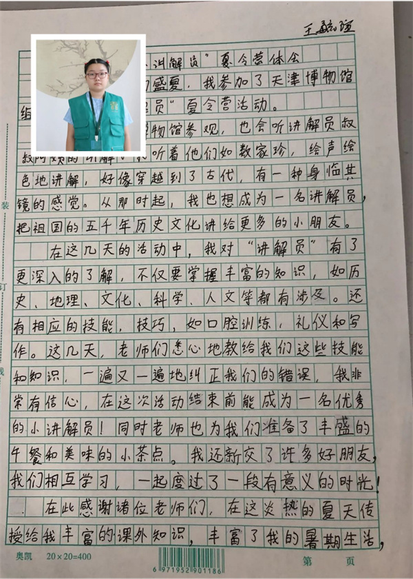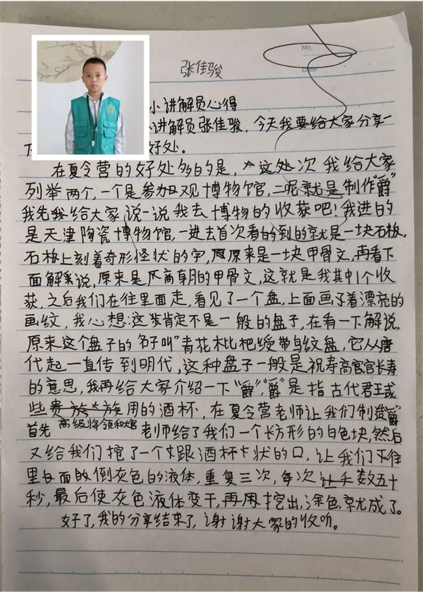 本次夏令营内容丰富,加强了小朋友们对博物馆的认识和了解,锻炼了口才和应变能力,提高了学习博物馆历史文化的信心。我们的“小小讲解员”都将心得体会都呈现在了日记中,大家来一起看看吧~