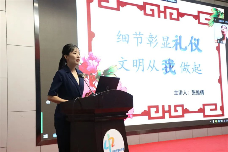众所周知,在博物馆当中无论是训练有素的讲解员,还是充满求知欲的观众,都需要在仪表、语言上表现得端庄得体。天博社教老师长期接受专业讲解训练,在课题设置时别出心裁地将讲解课程与校园礼仪巧妙结合,以生动事例为大家带去了一场精彩的礼仪分享课。讲座中,社教老师针对校园礼仪、参观礼仪、社交礼仪为大家进行逐一介绍,别小瞧这普普通通的待人接物,其中却蕴藏着中华文明的优秀传统,值得每位青少年朋友发扬光大。值得一提的是,本次讲座采用了直播+现场讲座、线上线下同步授课模式,其他年级学生也可以在第一时间观看讲座,参与博物馆互动体验。