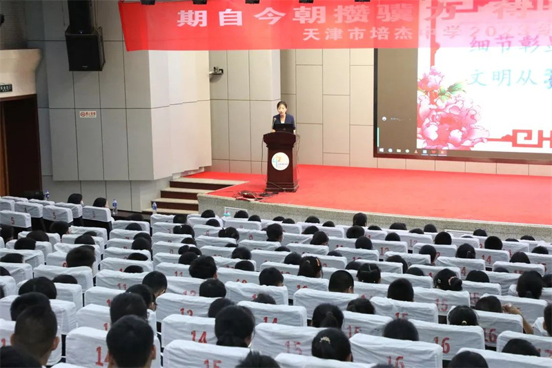 8月29日上午,天津博物馆社教人员亲赴我市第42中学,以校园讲座形式为初一、高一千余名新生启动了一场特别的“开学第一课”。本次新学期讲座并不是从文物知识开篇,而将主题确定为《细节彰显礼仪 文明从我做起》,这背后其实藏着博物馆人的“小心思”。