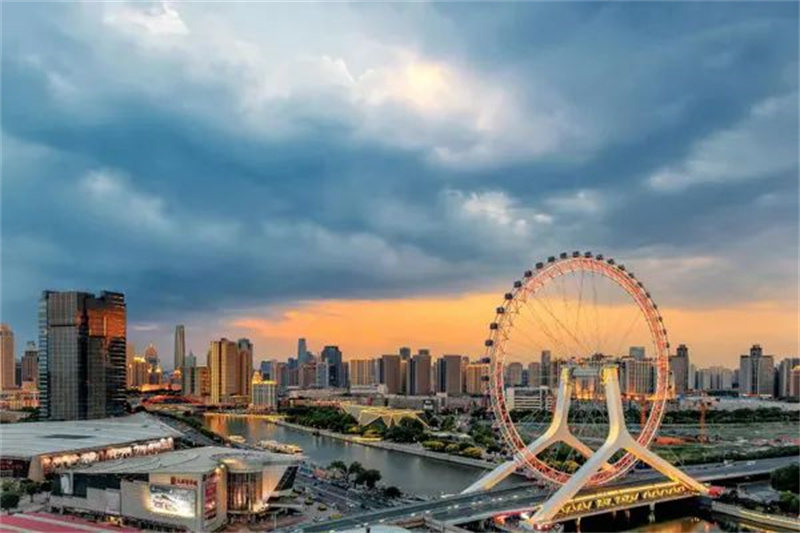 “天津之眼”摩天轮位于三岔河口永乐桥上,是世界上唯一建在桥上的摩天轮。“天津之眼”的建设有机融合了市民、游客休闲与消费这两大需求,同时打造了城市地标,创造了独一无二的城市文化符号,提升城市品味,推进城区文旅事业繁荣发展,成为天津市推进文旅融合发展的缩影。