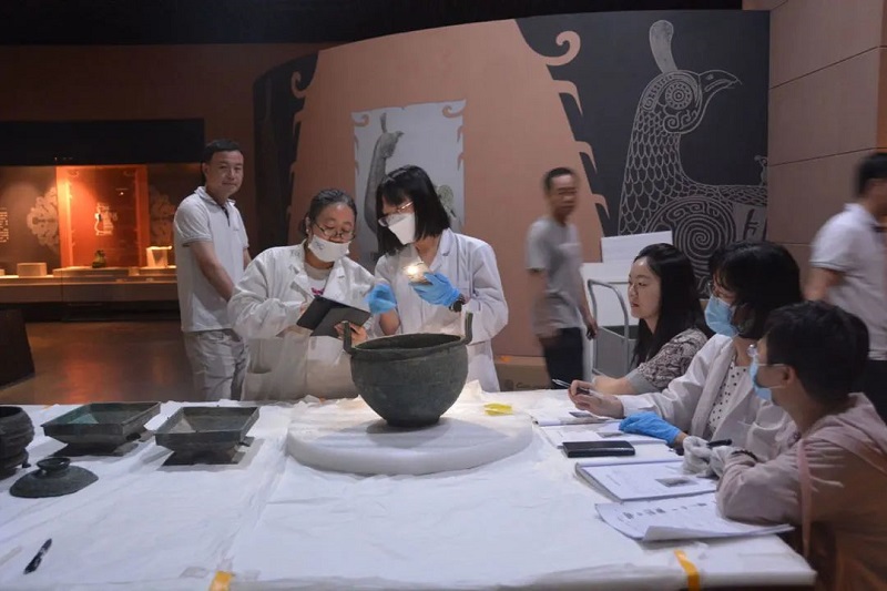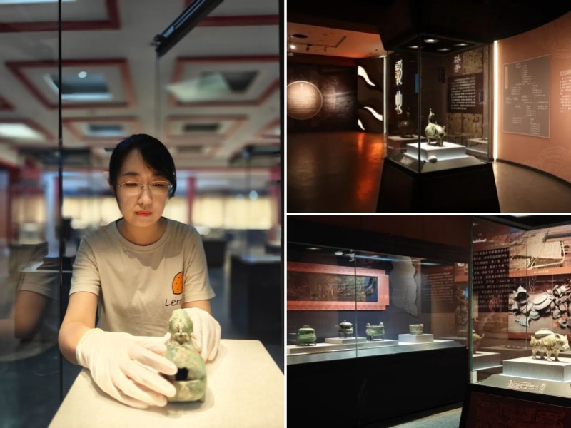 最后增补大量展品说明:除了描述形制特征外,还将展品与出土的遗迹单位相结合,尽量写清展品的使用者身份、出土地等,同时还对青铜器铭文进行了释读,并将铭文拓片印在说明牌或展板上,以便给观众提供更多的信息。