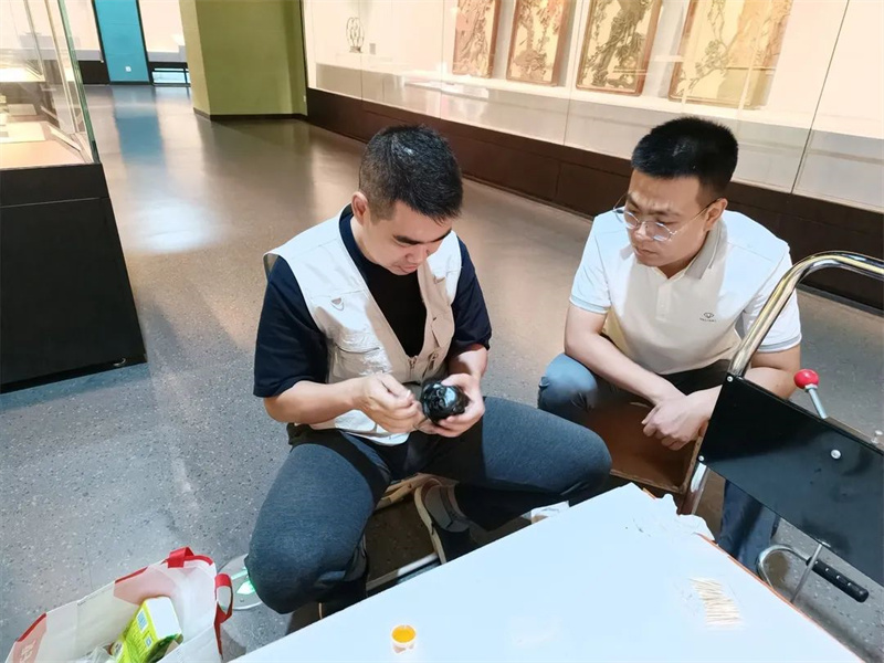 文物承载灿烂文明、传承历史文化、维系民族精神,是老祖宗留给我们的宝贵遗产,是加强社会主义精神文明建设的深厚滋养。为全面贯彻“保护第一、加强管理、挖掘价值、有效利用、让文物活起来”的新时代文物工作方针,八月份以来,天津博物馆文物保护技术部积极开展文物的日常维护保养工作,并对展厅部分文物采取临时加固措施。将文物保护意识由“抢救性修复”向“预防性保护”转化,主动采取预防性保护措施防止文物可能发生的一些病害,同时也是为了让文物以更好的状态展现给观众,更好地发挥文物所蕴含的历史价值、科学价值、艺术价值、社会价值、文化价值,让文物活起来。