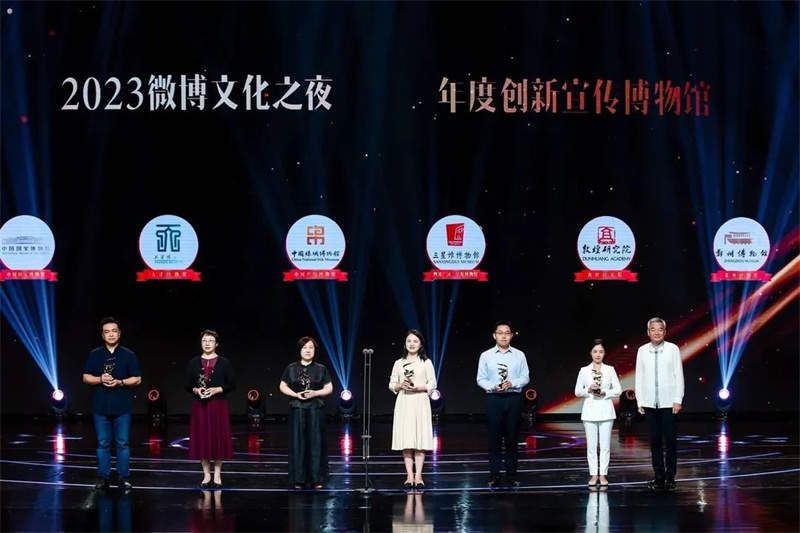 9月19日,由新浪微博、新浪网、中共郑州市委宣传部、中共郑州市委网信办联合主办的“2023年微博文化之夜”在郑州召开,国内文化名人、博物馆代表、非物质文化遗产传人、业界学者等百余位嘉宾通过线上线下结合的方式,共同呈现出一场文化饕餮盛宴,助力文旅经济高质量发展。天津博物馆从全国众多博物馆官方微博脱颖而出,喜获“微博年度创新宣传博物馆”荣誉称号,天津博物馆党委副书记张玲受邀参加颁奖典礼。