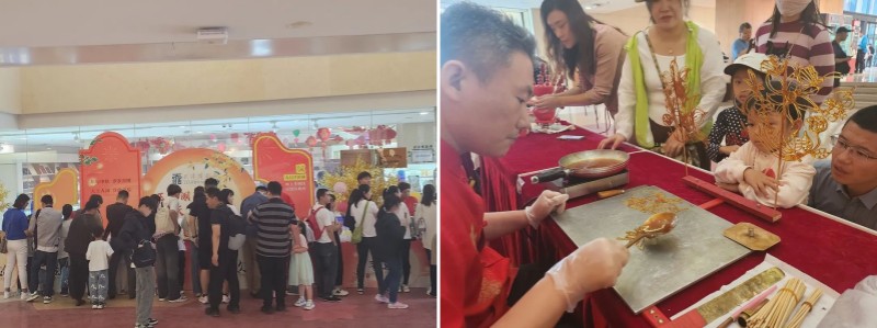 10月5日,天博文创商店前举办非遗技艺活动,以传统乐器进行演奏的女子四重奏,为现场观众带来一场视听盛宴。