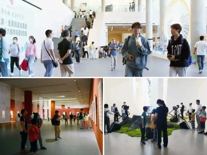 天津美术馆的观众络绎不绝,每个展厅都洋溢着观众们欢欣喜悦的笑脸,充分享受着我们为天南地北而来的朋友们准备好的丰富的文化盛宴。集亚洲最大规模MR混合现实、沉浸式、交互为一体的数字艺术展“图灵花园——沉浸交互MR数字艺术大展”你来打卡了吗?穿越层层数字场域,尽情玩味创造,踏上共寻自我的奇幻艺术之旅,沉浸式探索与创造艺术的无限可能。同时,还能欣赏到“志道·游艺—中国国家画院六人展”“邂逅活力非遗,创享品质之城”“奋进新征程 阅读新未来——书香天津·全民阅读成果展”“笑语飘向远方——杨柳青年画儿童形象发展史”等精彩展览。